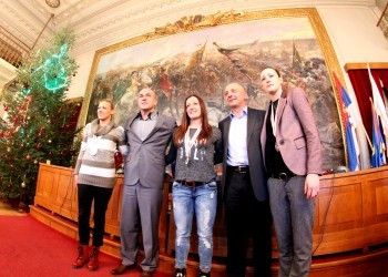 Somborke , članice reprezentacije Srbije, na prijemu kod gradonačelnika posle osvajanja srebra na evropskom prvenstvu u Beogradu