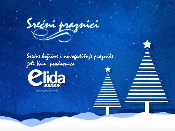 SPORTISTIMA,TRENERIMA,SPORTSKIM RADNICIMA, SUDIJAMA, FUNKCIONERIMA U KLUBOVIMA,NAVIJAČIMA I SVIM DRUGIMA,, PUNO USPEHA NA SPORTSKIM TERENIMA, I PUNO DOBRIH REZULTATA, KAO I DOBRO ZDRAVLJE SA ŠTO MANJE PEHOVA I POVREDA, I ISPUNJENJE SVIH ŽELJA U NOVOJ 2016 GODINI ŽELI DOPISNIŠTVO SAJTA SRBIJASPORTA IZ ZAPADNOBAČKOG OKRUGA, I PRODAVNICA SPORTSKE OPREME I REKVIZITA „E L I D A „ IZ SOMBORA.